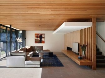 ستبدو الأسقف الخشبية متناغمة ليس فقط في المنزل الريفي أو في الحمام ، ولكن أيضًا في المناطق الداخلية الحديثة للشقة أو المنزل الريفي. القاعدة الرئيسية لاستخدام الخشب الطبيعي للزينة هي الجمع الصحيح بين تصميم الأسقف والجدران ، وكذلك مع المواد الأخرى. يوصى بتثبيت الأسقف الخشبية في الغرف ذات الرطوبة المنخفضة ودرجة حرارة الغرفة القياسية. لذلك ، لا يستحق التشطيب في منزل لا يتم تسخينه في الشتاء..