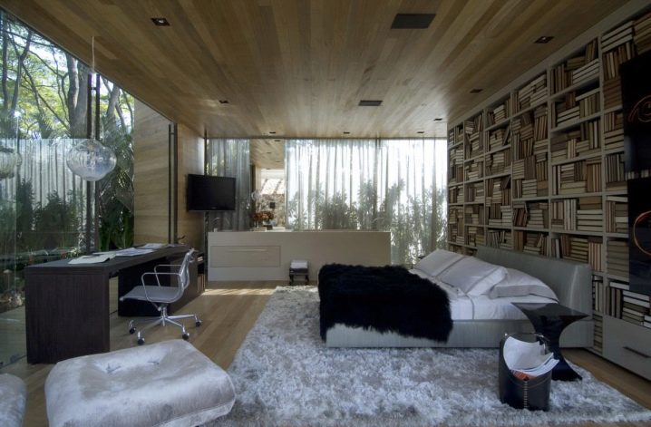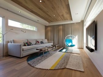 هناك سر تصميم بسيط إلى حد ما – استخدم لتزيين السقف خشب خفيف. تسمح لك هذه الخطوة برفع السقف بصريًا. تبدو الغرفة أكثر اتساعًا ، وهو أمر مهم جدًا. عند العمل في غرفة واحدة ، يمكنك الجمع بين عدة أنواع من الخشب الفاتح في وقت واحد.