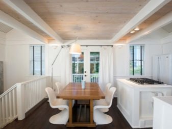 ليس من الضروري عمل السقف من قضبان كاملة أو خشب غير مقطوع. هناك العديد من التشطيبات الحديثة المثيرة للاهتمام ، من بينها سهولة العثور على التشطيبات التي تناسب غرفة معينة..