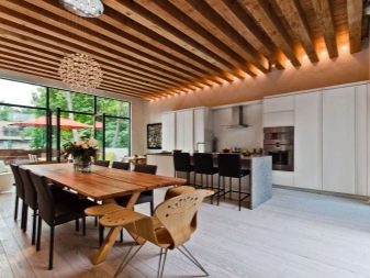 عند اختيار مواد تشطيب الأسقف ، يتم إيلاء اهتمام خاص للعوارض الزائفة. لا يتم استخدامها في كثير من الأحيان ، ولكن لها العديد من المزايا. بالإضافة إلى الخفة والقوة والمتانة ، فهي تتميز أيضًا بحقيقة أنه يمكنك داخل كل شعاع إخفاء الأسلاك أو تركيب المصابيح فيها. بمساعدة هذه الحزم المبهجة من الناحية الجمالية ، يمكنك رفع السقف بصريًا أو توسيع مساحة الغرفة.. لذلك ، المصممون يحبونهم كثيرًا..