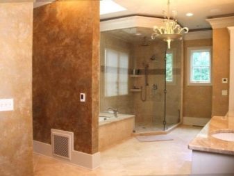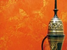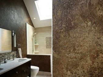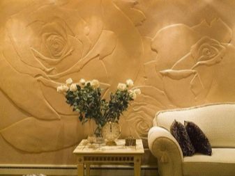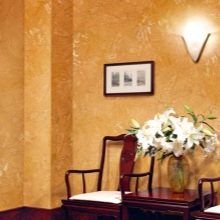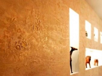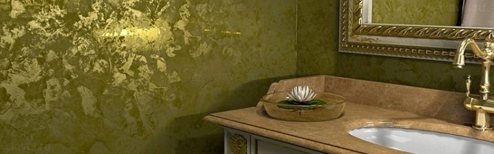 الميزة الرئيسية لمثل هذا التكوين هو مظهره ، والذي يعطي المظهر النبيل للقصر الشرقي حتى في غرفة صغيرة. الجدران ذات اللمسات الذهبية والفضية لطيفة الملمس وتتمتع بجميع الخصائص المميزة للرخام. على سبيل المثال, في الطقس البارد ، يحتفظ الجص بالحرارة ، وفي الأشهر الحارة ، على العكس من ذلك ، سيعطي البرودة للغرفة.