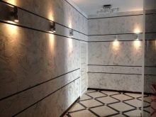 هناك مشكلة أخرى في الرواق – يمر عدد كبير من الناس من خلاله وبملابس أو نفس الدراجة باستمرار ، يلامس الناس الجدران. هذا هو سبب تعرض الغرف لأضرار ميكانيكية متكررة استخدام الجص ذو القوة المتزايدة – على سبيل المثال ، مثل “shagreen” أو “معطف الفرو”.