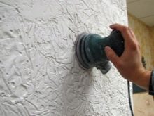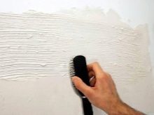 أولاً ، يجب وضع الخليط على الجدران المعدة. بعد وضع الخليط ، دحرجه على الفور على السطح. أو يمكنك المشي بأداة عادية ، ثم بأداة مريحة. سيساعد هذا في تكوين نسيج غير عادي..