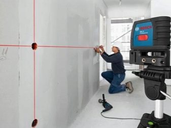 - مستوى الليزر – أيضًا راحة إضافية غير مدرجة في المجموعة الدنيا الرخيصة. يمكنك إما استعارته من جيرانك أو شرائه للاستخدام المستقبلي ، حيث سيكون مفيدًا للإصلاحات اللاحقة. يتم تثبيت الجهاز في زاوية مثل المنارة ، ثم تظهر الشعاع حتى الحد الأدنى من المخالفات على السطح بسبب تطبيق طبقة سميكة جدًا من المعجون.