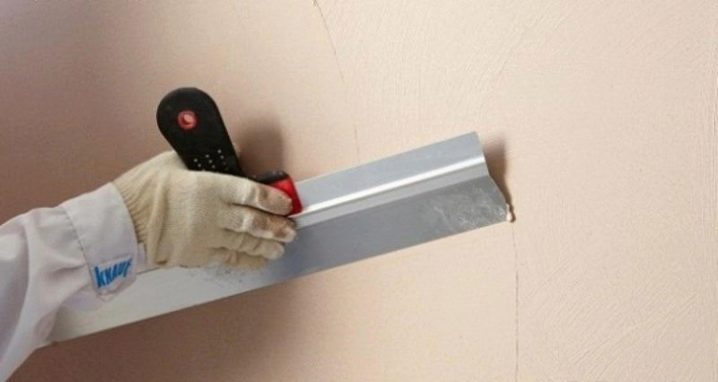 - بحركات سلسة بأداة عريضة ، يتم تطبيق المادة قطريًا على الحائط ، بينما يتم تثبيت الأداة بزاوية حادة (حوالي 30 درجة) على السطح ؛