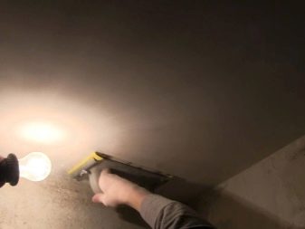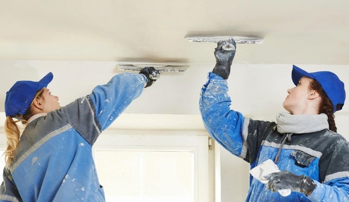 إذا كانت هناك حاجة لمعالجة السقف ، انتبه لمزيج الجبس. إنه أبيض اللون ، ويشكل طبقة رقيقة ، وله لمسة نهائية غير لامعة ، ويتم تطبيقه بالتساوي ، ويتصلب بسرعة. يتراوح متوسط وقت المعالجة الكاملة من 14 إلى 24 ساعة ، وبعد ذلك يصبح السطح جاهزًا للطلاء أو أي تشطيب نهائي آخر..
