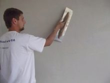 خلطة الجبس ينتشر بالتساوي ويترك لمسة نهائية غير لامعة. لأقصى حد لا ينصح باستخدام هذا النوع من المعجون في الغرف ذات الرطوبة العالية – يمتص الجبس الماء بسهولة. أفضل ما في الأمر أن هذا الطلاء مناسب لغرف النوم وغرف المعيشة وغرف الأطفال ، خاصةً إذا كانت الخطة النهائية هي تطبيق طلاء زخرفي على شكل ورق حائط ، على سبيل المثال ، على الجص. على عكس الاسمنت, لا يتقلص ، يمكن تطبيقه في طبقات سميكة.