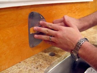 - عندما تقوم بتطبيق آخر طبقة من الجص (ويمكن أن يكون هناك من 4 إلى 10) ، فأنت بحاجة إلى الانتظار لمدة 15-20 دقيقة وتلميع الطلاء. لهذا الغرض ، يتم استخدام ملعقة عريضة. يجب أن يتم ضغطه بإحكام على الجدار النهائي ومعالجته بشكل عشوائي ، مما يؤدي إلى تشابك السكتات الدماغية.