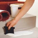 قبل استخدام لاصق البلاط ، يجب أيضًا تحضير سطح الأرض أو الجدار. للقيام بذلك ، قم بإزالة جميع العناصر البارزة ، وكذلك تشققات المعجون والمخالفات والرقائق الكبيرة. يمكن القيام بذلك بمزيج من الأسمنت والرمل أو المعجون. بعد أن يجف المحلول تمامًا ، يجب أن تبدأ في تطبيق خليط التمهيدي. سيوفر ذلك التصاقًا أفضل لمادة لاصقة الأكريليك على الركيزة ويقلل بشكل كبير من استهلاكها..