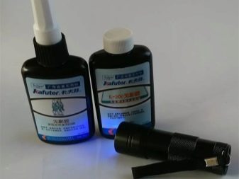 الغرض من الغراء بتأثير التصلب فوق البنفسجي هو لصق الأجزاء الشفافة من الزجاج والضفيرة. يتم ضبط التركيب ويتصلب تمامًا تحت تأثير الأشعة فوق البنفسجية.