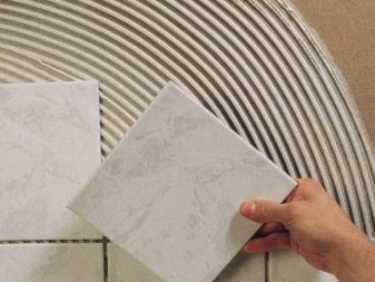 بعد أن يتم تحضير سطح الجدار أو الأرضية بالكامل ، يمكنك البدء في لصق البلاط.. للقيام بذلك ، من الضروري تطبيق كمية معينة من الغراء على سطح العمل ، ثم توزيعها على المنطقة باستخدام مجرفة مسننة. يوصى بإمساك الأداة بزاوية 30 درجة للقاعدة ، مع الضغط عليها برفق لملء الفراغات. عند تشكيل الطبقة اللاصقة ، يجب عليك مراقبة سمكها بعناية. يمكن أن تتسبب الطبقة السميكة جدًا في تعويم البلاط وزيادة مخاطر التركيب غير المتكافئ ، في حين أن النحافة جدًا لن توفر التصاقًا جيدًا ومتانة. يجب إزالة الغراء الزائد على الفور بمنديل جاف ، وإلا فسيكون من الصعب جدًا القيام بذلك بعد تصلب التركيبة.