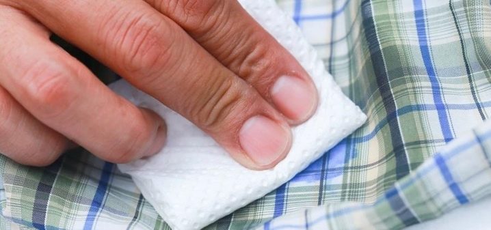 يمكن استخدام البنزين لتنظيف الأقمشة الخشنة. يمكنك محاولة إزالة البقع القديمة بالخل العادي ، حيث تفضل البيئة الحمضية مونومرة سيانو أكريلات..