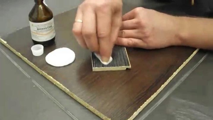 في الحالات التي يكون فيها السطح مغطى بطبقة من الورنيش ، لا ينبغي استخدام الأسيتون. يمكن أن يؤدي استخدام “ديميكسيد” أيضًا إلى إتلاف الورنيش ، لذلك لتنظيف الأسطح المطلية ، سيتعين عليك فركها بالماء والصابون لفترة طويلة..