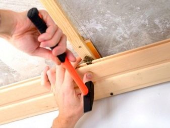 لإرفاق القضبان بالإطار باستخدام مسامير مثبتة في الأخاديد ، تحتاج إلى استخدام doboiner. هذه الأداة مفيدة لأنها تدفع الظفر إلى الداخل دون كسر اللوحة أو إفساد مظهرها. يجب معالجة الجدار الخلفي للأخاديد بعناية ، لأن أدنى صدع أثناء العملية يتضح أنه انتهاك قاتل. لا تلائم الكتل بإحكام شديد مع بعضها البعض ، بل على العكس من ذلك ، فإن ترك فجوة تبلغ 0.1 أو 0.2 سم يسمح لك بالتعويض عن تمدد الشجرة المغمورة بالمياه أثناء التشغيل اللاحق.