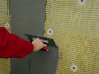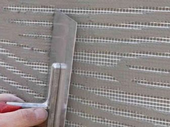 - عندما يتم توصيل العزل بكامل سطح الواجهة ، يجب تقويته. يتم ضغط شبكة التسليح في الصوف المعدني ، حيث يتم وضع محلول اللصق بشكل أولي. يفضل استخدام شبكة ذات شبكة دقيقة مقاومة للرطوبة والتكوينات القلوية.
