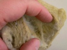 - بادئ ذي بدء ، إنه كذلك تكوين غبار عالي. هذا ينطبق بشكل خاص على الصوف الزجاجي وصوف الخبث. يحتوي غبارها على شظايا صغيرة حادة ، والتي إذا تلامست مع الجلد ، فسوف تسبب أضرارًا وحكة شديدة. كما أن استنشاق الغبار بالحطام ضار للغاية. لتجنب مثل هذه العواقب غير السارة ، يجب إجراء أعمال التركيب باستخدام ملابس واقية وجهاز تنفس ونظارات واقية..