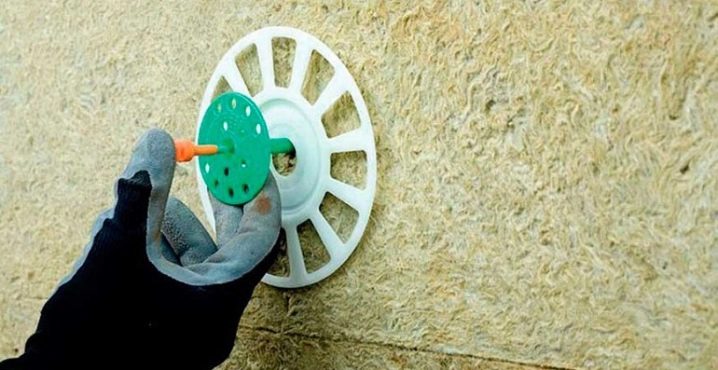 - ثم يتم تغطية كامل سطح لوح الصوف المعدني بمادة لاصقة خاصة ويتم ضغطه بقوة على الحائط. تصنع الثقوب في زوايا ووسط البلاطة لإدخال المسامير ذات الرؤوس العريضة فيها وطرقها فيها. سيؤدي ذلك إلى إصلاح اللوح بشكل أكثر موثوقية ، وسيساعد أيضًا على تقليل تشوهها أثناء العملية اللاحقة..