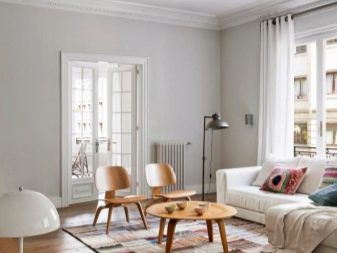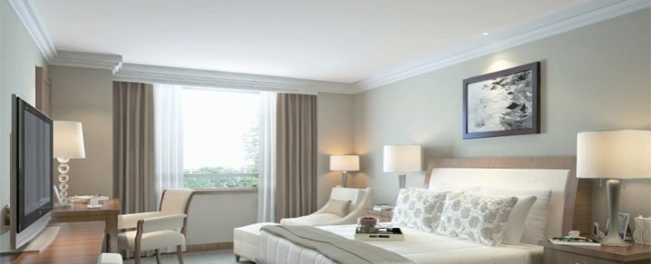 إذا كان الجزء الداخلي من الغرفة ملونًا وغنيًا ، فمن الأفضل اختيار صب السقف الأكثر تواضعًا. عندما نتعامل مع الأسقف والجدران الساطعة ، فإن أفضل حل هو تثبيت صب أبيض ، والذي لن يصرف الانتباه عن ديكور الغرفة..