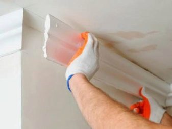 - يتم لصق المنتجات بعد الانتهاء من جميع الأعمال. يقوم العديد من الأشخاص أولاً بتغطية الجدران بورق الجدران ، ثم يقومون بتثبيت سقف ممتد ، وبعد ذلك فقط يبدأون في تثبيت القاعدة. اللصق هو الطريقة الأكثر شيوعًا لإرفاق الألواح. لا يوجد خيار آخر لإدخال القوالب في هذه الحالة..