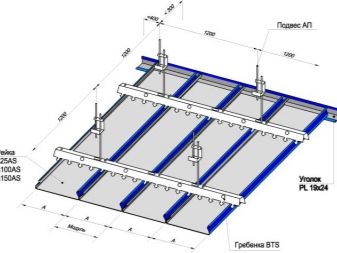 يتم تثبيت القضبان على الموجهات باستخدام أمشاط من الألمنيوم أو الفولاذ بسماكة 0.6 إلى 1 مم ومجهزة بهيكل قفل خاص مصنوع على شكل ألسنة مثبتة. يتم أيضًا تضمين عناصر التثبيت مثل الشماعات والفواصل والأوتار في نظام سقف الحامل. يتم تثبيت الأدلة على سطح المحمل باستخدام الشماعات الزنبركية التي تسمح لك بضبط موقع الصفائح وتكون مسؤولة عن موثوقية تثبيت هيكل السقف بالكامل.