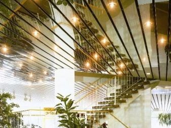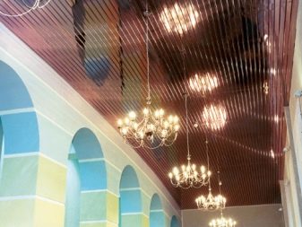 - مسلسلات ايطالية ممثلة بألواح من الألمنيوم المدلفن وذات حواف مستديرة. تنتمي نماذج الشبكة الموسعة أيضًا إلى هذه المجموعة. تم تصميم السقف الإيطالي للتركيب المفتوح والمغلق. يتمثل جوهر طريقة التثبيت المفتوح في تشكيل الأسطح بصفائح فضفاضة. قد لا يتم تغطية الفجوة بين الشرائح المجاورة بأي شيء أو يمكن تزيينها بإدخالات ملونة.