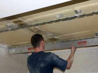 قبل البدء في تركيب هياكل التوجيه ، يجب تحضير سطح لوح السقف.. في حالة تنفيذ العمل في غرفة ذات رطوبة عالية ، يجب استخدام الخلائط المضادة للفطريات للمعالجة.. بعد أن تجف القاعدة تمامًا ، يلزم البدء في وضع العلامات الخاصة بملف الزاوية ، والتي يتم تطبيقها في مستوى واحد حول محيط الغرفة. لتحديد أكثر دقة ، يجب استخدام مستوى بناء أو ليزر.