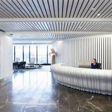 - عرض متوازي المستطيلات ممثلة بصفائح الألمنيوم ذات المقطع العرضي المستطيل الواضح. بفضل هيكل الشرائح هذا ، يكتسب السطح المتشكل ارتياحًا صارمًا. النموذج مصمم للتركيب المفتوح.