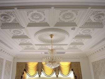 غالبًا ما يتم اختيار الأسقف الجصية للمؤسسات الثقافية. بمساعدة الجص ، يمكنك تحديد المكان الذي توجد فيه الثريا..