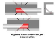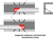 عندما يتم تثبيت الرغيف الفرنسي الأول على الحائط ، انتقل إلى الثاني. ضع المحلول ، لا تنسى المؤخرة عند مفصل الفيليه. عادة ما يكون هذا الخطأ شائعًا جدًا وسيتطلب بعض الجهد لإصلاحه.. هناك حاجة إلى الحد الأدنى من المعجون في النهاية ، بحيث لا يفسد الزائدة المظهر. بعد ذلك ، اضغط على قاعدة السقف على الجدران ، ثم على المفصل مع الرغيف الفرنسي المثبت بالفعل. من المهم جدًا الوصول إلى التقاطع بوضوح ودقة ، خاصةً إذا كانت الرغيف الفرنسي كبيرة. حتى الانحراف الطفيف سوف يفسد بشكل كبير مظهر الألواح السقفية..