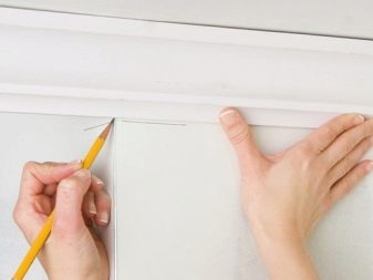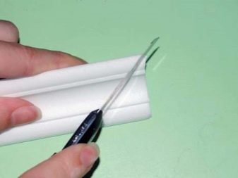 الرغيف الرغوي الستايروفوم هو الأسهل في التعامل معه. قطعها سهل بما فيه الكفاية. نقيس المسافة المطلوبة بشريط قياس على السقف ، ثم على المنضدة أو على الأرض نقيس نفس المسافة على الرغيف الفرنسي ونضع العلامة. قلم البناء مناسب تمامًا للعلامات ؛ في حالة عدم وجود قلم رصاص ، يمكنك استخدام قلم رصاص عادي. يجب أن تكون العلامة على ظهر الرغيف الفرنسي. بعد ذلك ، باستخدام سكين كتابي أو بسكين عادي ، ولكن يفضل أن يكون حادًا جدًا ، اسحب على طول الجانب الأمامي برفق ، دون الضغط ، لأن المادة هشة وتبقى العلامات عليها بسهولة.