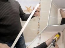 يوصى بالتثبيت للبدء من الزاوية. يُعتقد أن الاتصال سيكون أفضل من الآخرين. يُنصح باختيار موقع يكون دائمًا في الأفق. قم بإزالة المعجون الزائد من القاعدة حتى لا يفسد القطرات المظهر ، ولكن لا تفرط في ذلك ، عند الضغط ، سوف يملأ بعض الفائض التجاويف بين الجدار والباجيت جيدًا.