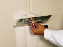 يجب ملء طبقات ألواح الحوائط الجافة بالمعجون ومحاذاة بطول الطول. لهذا فمن المستحسن استخدام ملاعق ضيقة..