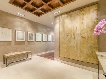كل هذا يتوقف على المفهوم العام للداخلية المختارة. إذا كانت هذه وفرة من الخشب ، فلا تكررها في ظل الجص. من الأفضل جعلها معبرة باستخدام تقنية النغمات المتناقضة. في هذه الحالة ، الجص “خنفساء اللحاء” مناسب ، نسيج اللوح.