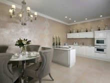 - إنها مبهجة من الناحية الجمالية. يبدو أي تصميم داخلي أنيقًا وجميلًا ومناسبًا مع هذا الديكور. في الوقت نفسه ، لا يحد نمط الجص المحكم من عدد قطع الأثاث.