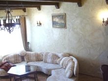 كل هذا يتوقف على المفهوم العام للداخلية المختارة. إذا كانت هذه وفرة من الخشب ، فلا تكررها في ظل الجص. من الأفضل جعلها معبرة باستخدام تقنية النغمات المتناقضة. في هذه الحالة ، الجص “خنفساء اللحاء” مناسب ، نسيج اللوح.