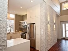 - نظرًا للظل المستخدم وتأثير معين للمادة ، يمكنك زيادة ارتفاع وعرض الجدران بصريًا ، ومحو الحدود الواضحة للأرضيات.