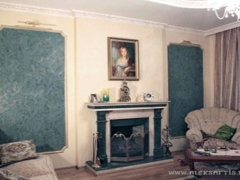- جص زخرفي متوافق مع التشطيبات الأخرى. يمكنك دمجها مع ورق الحائط وألواح الجدران والكسوة وحتى إدخالات الكتان الممتدة في هياكل ألواح الجبس التي تمتد على الحائط..