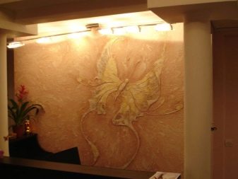 في حالة أخرى ، تكون الزخرفة أكثر تعقيدًا. أولا ، الطبقة الزخرفية الأولى مصنوعة. ثم ، في المكان المناسب ، من خلال تطبيق الكتلة ، يتم عمل نمط حجمي. يمكن أن تكون ذات أحجام ونقوش وموضوعات مختلفة. يتم إنشاء هذه الرسومات من قبل محترفين لديهم مهارات فنية ونحتية..
