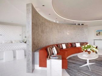 - ديكور متواضع وأنيق لمنطقتين وظيفيتين في الفضاء. يخفف الارتياح الخفيف من الداخل الحديث من الصور النمطية المعتادة.