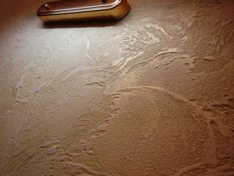 أخيرًا ، في كثير من الأحيان ، عند اختيار جص “رملي” مزخرف ، يرغب العملاء في الحصول على جدار عند الإخراج يشبه رمال النهر الغرينية. لإنشاء مثل هذا التصميم ، يلجأ الحرفيون عادةً إلى طريقة بسيطة إلى حد ما: يكفي فقط تطبيق الكتلة على الحائط بحركات قطرية..