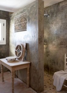 اختياريا التنفيذ زخرفة الجدار في الحمام مع الجص البندقية ، يوصى بإعطاء الأفضلية للأسطح الملساء. يمكن أن تتسبب الأنسجة المنقوشة في حدوث العفن ، لأن الأوساخ تتراكم بسهولة في التجاويف وتجمع المياه. يجب اختيار مادة مماثلة لتزيين الجدران في حمامات السباحة والساونا والحمامات. تأكد من وضع طبقة نهائية مقاومة للرطوبة.