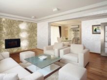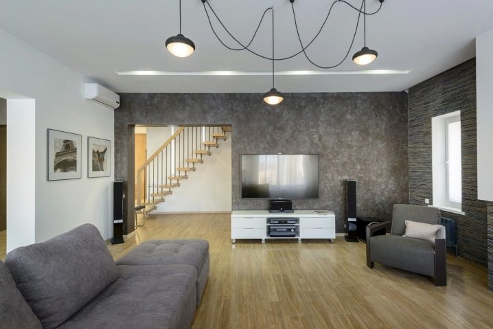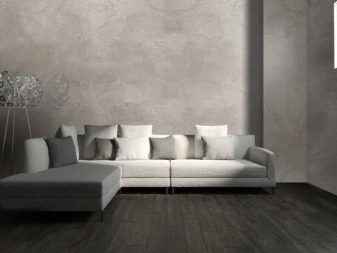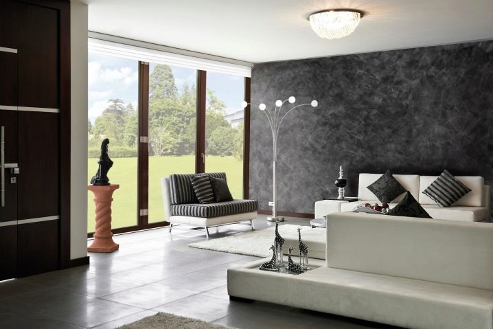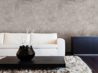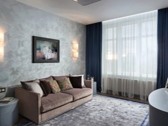بالنسبة لغرفة المعيشة بأسلوب كلاسيكي ، فإن النسخة الدقيقة من المواد بظلال الباستيل الفاتحة مناسبة. للحصول على أسلوب عالي التقنية ، بالإضافة إلى التصميمات الداخلية البسيطة ، يمكنك اختيار جص أكثر خشونة وخشونة من ظلال رمادية أو جرافيت أو فولاذية. يعد الجص الفينيسي اللامع خلفية رائعة لغرف المعيشة الفسيحة مع الكثير من الضوء.. يجب تجنب الرسومات الخيالية للغاية. في البداية ، سوف يجذبون الانتباه بالطبع ، لكنهم لا يتسببون إلا في الإرهاق والتهيج..