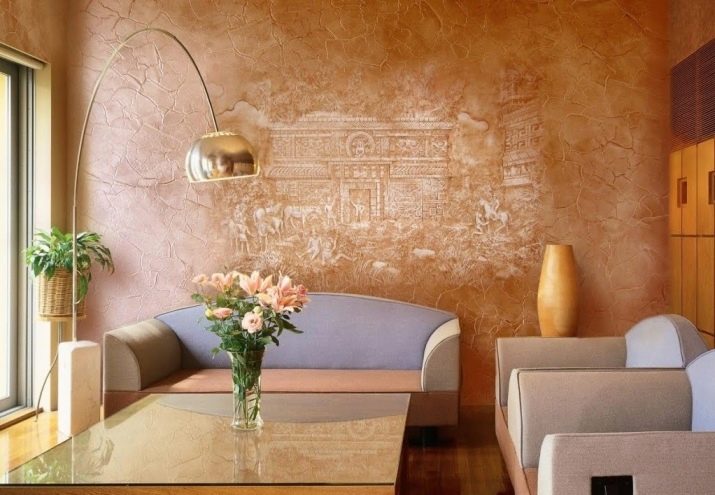 - كراكيلور. السطح الذي تتم معالجته بتقنية مماثلة هو عمر مصطنع ومغطى بشبكة من الشقوق. للحصول على تأثير مماثل ، يتم استخدام ورنيش craquelure خاص. يتم تطبيقه على الطبقة النهائية من الجص ، وعندما يجف ، يجذب طبقة الجص إلى نفسها ، مما يؤدي إلى تمزيقها. هذا يخلق نمطًا غريبًا من الشقوق..