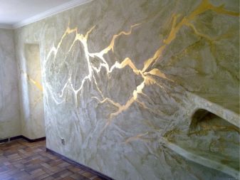 - بالمير. يقلد الأسطح الرائعة المصنوعة من الرخام والجرانيت والملكيت والعقيق اليماني المخترق بشبكة من الأوردة المضيئة. بفضل هذا الطلاء ، من الممكن الحصول على التهوية والحجم.