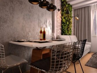 من الأنسب استخدام هذه الفكرة في المطبخ أو غرفة الطعام. تكفي “جزيرة” صغيرة لإضفاء الحيوية على الغرفة. لا تنسى أن تحافظ على لون الحائط اللامع مع الملحقات المناسبة له. بالنسبة لشقق الاستوديو والمساكن ذات الطراز العلوي ، يصبح الجص الفينيسي الخشن في الظل الغني وسيلة لتقسيم المناطق. ومع ذلك ، ليس من الضروري اختيار لون نشط ، لأنه يمكنك تحديد المساحة باستخدام الزخارف القطبية. ضع مزيجًا أكثر نعومة على الجدران في منطقة الترفيه وغرفة المعيشة ، وهو مزيج محكم في المطبخ.