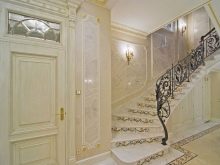 - جص برقائق رخام فصائل مختلفة. عادة ما يتم استخدامه لتسليط الضوء على مناطق معينة من الداخل ، ويسمح لك بإبراز اللهجات ، ولفت الانتباه إلى التفاصيل.