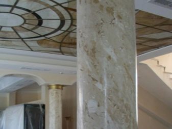 تبدو رقائق الرخام جيدة ليس فقط في المساحات الكبيرة والجدران ، ولكن أيضًا عند تزيين العناصر المعمارية الزخرفية. بادئ ذي بدء ، نحن نتحدث عن زخرفة الأعمدة والحواف وبوابات الموقد. أما بالنسبة للأسطح ، فمن الأفضل استخدام المواد في أعمال الطوب المسطحة والخرسانة والجدران الجافة..