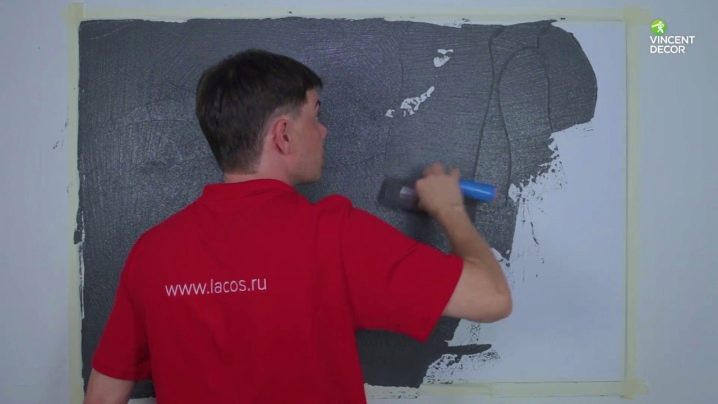 يتم تطبيق الطبقة الثانية بضربات إغاثة فوضوية بحيث تتشكل المخالفات على الحائط. يُسمح للجص بالجفاف قليلاً لمدة خمس عشرة دقيقة..