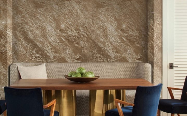 بمساعدة الجص الترافرتين الإيطالي ، لا يمكنك تشكيل أسطح منقوشة فحسب ، بل أيضًا طلاء لامع ناعم. لإنشاء هذا التأثير ، يجب أن تكون الطبقة النهائية بعد التجفيف مصقولة جيدًا..