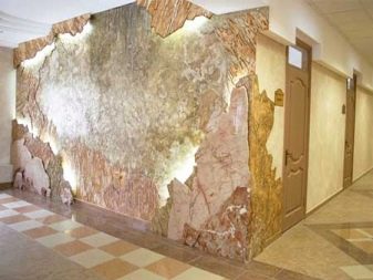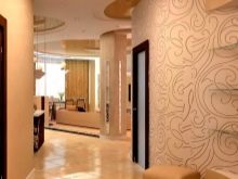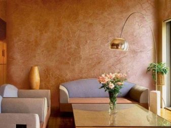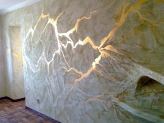 - تشطيب الجص في القاعة على الطراز الفينيسي. القوام المعقدة للغاية لا تذكر حتى أن هذا هو الجص العادي القائم على الجبس.